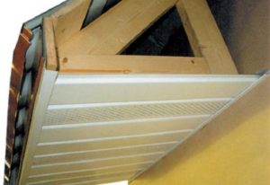 - Отделывая свесы дома софитовыми планками, можно использовать перфорированные панели для вентиляции.